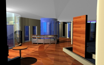 Projekt wnętrz holu z recepcją biura w budynku Millenium Plaza - Warszawa